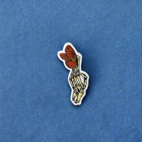 Skeleton Hand Orange Butterfly Patch